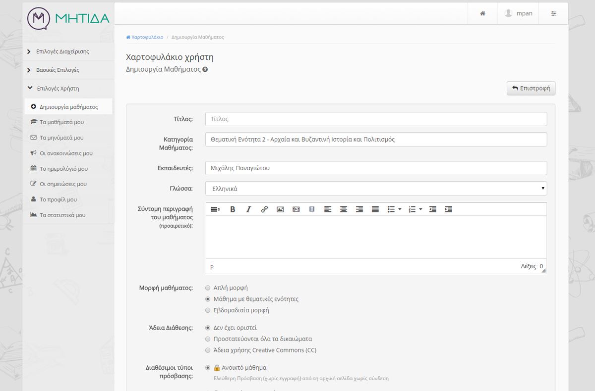 Επιλογές Μαθήματος